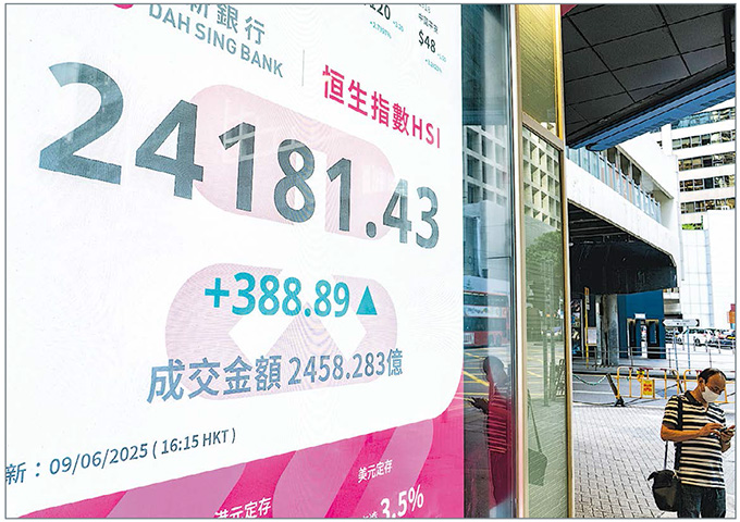 恒指高開185點後升幅擴大,午後升幅擴大,並以全日最高位收市,報24,181點,升388點或1.63%,是3月20日後收市新高。國指升1.7%,報8780點,亦創逾兩個半月新高;科指漲2.8%,報5433點,是5月12日後收市新高。