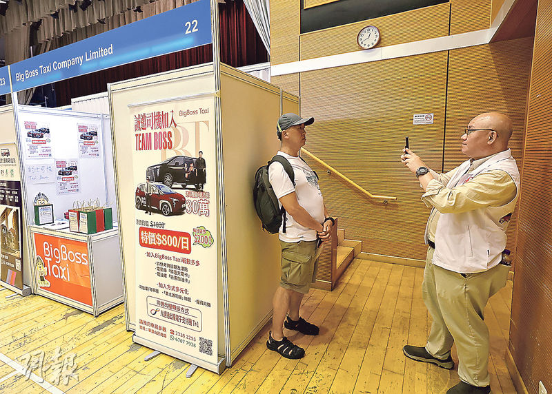 【明報專訊】的士車隊「開跑」在即,車隊須於7月底前有至少六成的士提供服務,方可獲發牌運作。早前有車隊擔憂請人難,冀降低發牌門檻。車隊「BigBoss Taxi」昨日參與勞工處招聘會,以1.3萬元底薪加獎金聘請全職司機,早上逾30人遞表申請。車隊透露招聘進度理想,有信心可達180輛的士之發牌門檻。有遞表司機認為現時市道低迷,自行租車營運收入相對不穩定,車隊設底薪具吸引力。