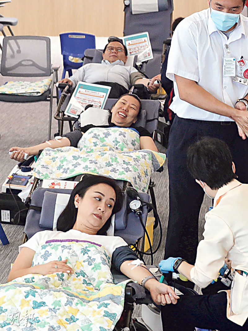 【明報專訊】立法會噚日舉行捐血日,香港紅十字會輸血服務中心派出流動捐血隊,去到立法會綜合大樓提供捐血服務,醫衛局長盧寵茂同唔少議員都有參與。局長話,從醫學角度而言,人嘅血液可以講係「產能有剩」,而捐血可以增強新陳代謝同免疫力,可以話係「無蝕底、有着數」。