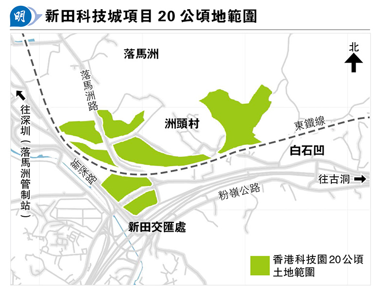 資料顯示,由香港科技園主導的新田科技城項目,涉約20公頃土地,毗鄰深圳皇崗和福田的創新科技區,將組成創科發展樞紐,並成為綜合創科生態圈,促進人工智能與數據科學、生命與健康科技、新材料、新能源、微電子、電子及先進製造等領域的發展。新田科技城項目預計於2027年動工,政府去年《施政報告》宣布,計劃由2026至2027年起,陸續推出約20公頃新創科用地,並交由香港科技園發展及營運。