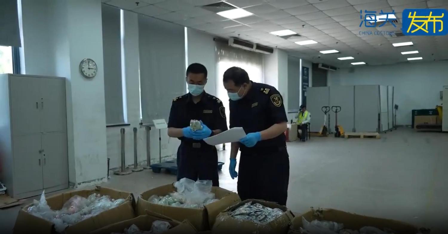 內地海關發布,上海浦東國際機場海關關員近日在對一批快件開展監管時,發現多票申報為「恐龍玩具樣品」、「毛絨玩具」、「掛件」的貨物實際為印有「POP MART」(泡泡瑪特)品牌標識的玩偶,總計5961個,查驗關員初步判斷存在較大侵權嫌疑。