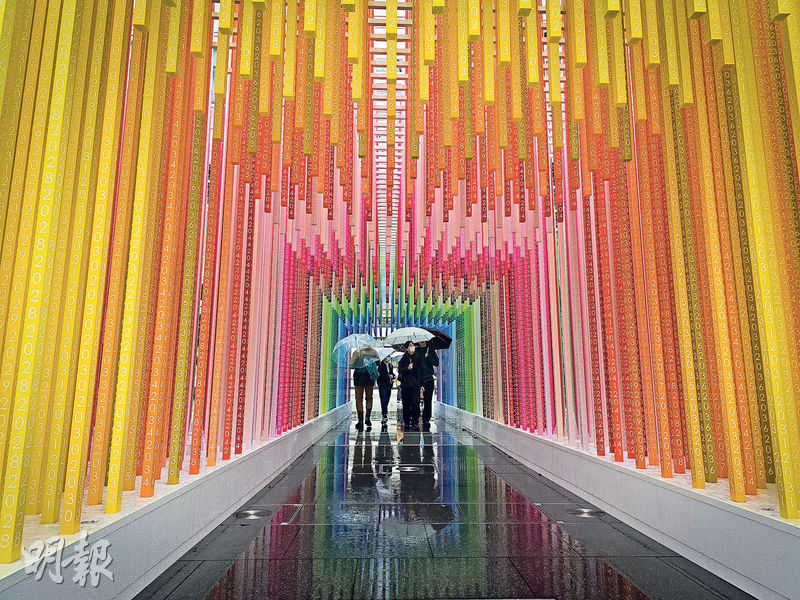 對記者來說,與其說是探索新地標,不如說是為了網上掀起熱話的七彩「隧道」而來。走出車站,便看見不少撐着雨傘的途人紛紛走往一條七彩「隧道」!這個名為《100色の道》的藝術裝置,由居日法籍建築師Emmanuelle Moureaux創作,是其100 Colors系列的作品。該系列以顏色分割出獨特空間,曾於紐約、巴黎、迪拜、倫敦等地展出,而位於大阪梅田的BAO BAO ISSEY MIYAKE亦曾展出100 Colors系列的其他藝術裝置。《100色の道》由多條約100種顏色、稱為「線」的立體直柱組成,色彩斑斕,每條「線」刻劃着由2025年起計未來100年的不同年份,當你漫步其中,恍如在探索未來百年光景。在藝術裝置附近,不定期舉行Gateway Park Market等活動,詳情可瀏覽官網。由於高輪Gateway City大部分設施尚未開放,因此打完卡,逛一逛便可轉場。