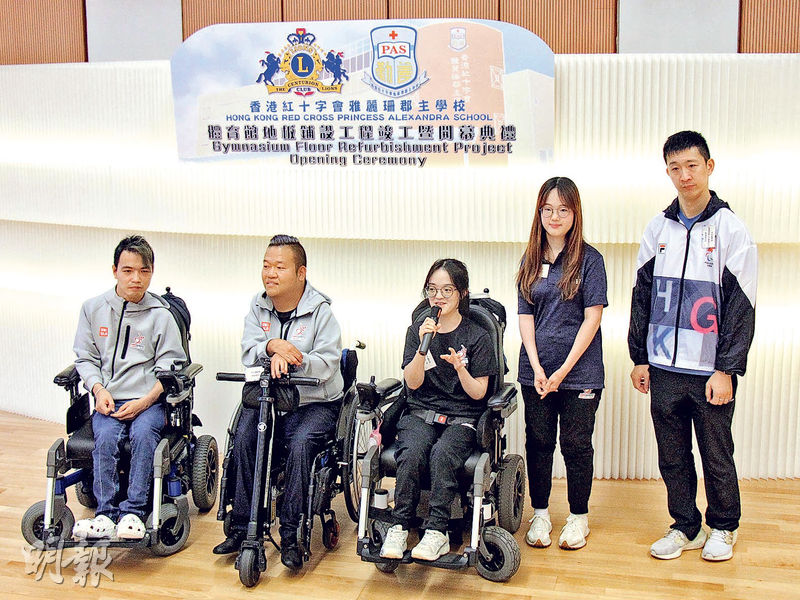 【明報專訊】「神奇小子」蘇樺偉、龍子健及梁育榮等退役和現役殘奧港將,昨回到位於藍田的母校香港紅十字會雅麗珊郡主學校,出席學校體育館地板鋪設竣工暨開幕典禮。蘇樺偉和梁育榮皆稱母校體育館翻新後,有助師弟妹發展運動潛能,為港隊孕育新血。