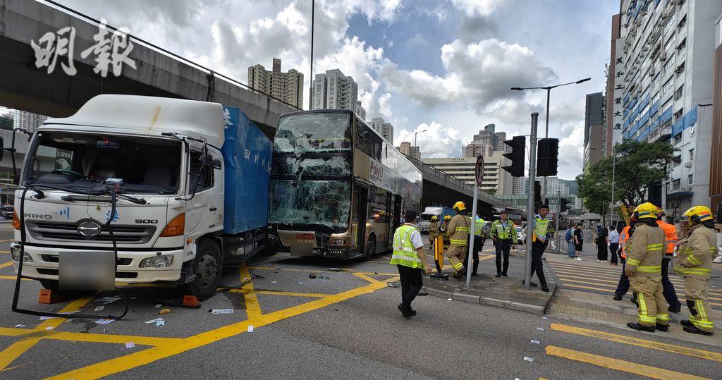 即時港聞 九巴貨車葵涌道相撞釀10人傷 (15:30) 發佈於 5 個月 前 2025 年 6 月 19 日 By 明報 下午1時許,一輛九巴沿葵涌道往九龍方向駛至葵安道交界時,與一輛貨車相撞。意外中,巴士車長及9名乘客受傷。現場所見,九巴車頭損毁嚴重,車頭擋風玻璃破裂,右邊車頭撞及貨車車身,貨車擋風玻璃飛脫,雜物、碎片散落一地。 據現場消息,涉事貨車從葵涌道右轉葵安道時,與迎面線巴士相撞。上址十字路口交通燈位,不能右轉,不排除貨車不依照交通指示肇禍。 相關文章:交通意外編輯推介 Up Next 警粉嶺軍地搗破太空油製毒工場拘一男 (16:37) 不要錯過 立法會三讀通過僱傭條例修訂草案 降低「連續性合約」工作時數門檻 (17:09) 繼續閱讀 贊助商 猜你喜歡 馬鞍山54歲單車男落斜自炒昏迷 送院搶救不治 (14:18) 觀塘三車相撞的士翻側 兩名的士司機受傷 (12:30) 拖紙皮七旬婦旺角遭旅巴撞斃 旅遊巴旺角撞斃女途人 (17:12) 七旬婦慈雲山捱撞 留醫4晚不治 (23:29) 的士啟德失事翻側 司機乘客一度被困 (16:57)