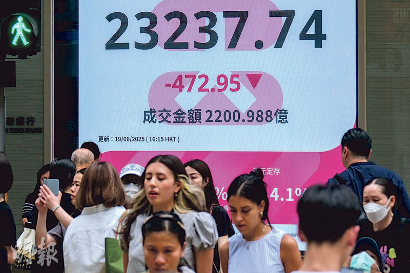 【明報專訊】美國聯儲局暗示不急於減息,加上美國據報籌備未來幾日對伊朗發動攻擊,港股昨一度跌超過500點,收跌472點,收報23,237點,連跌第三日累挫823點,成交金額增加至2200億元,大市跌幅全面,幾乎全部藍籌齊跌,騰訊(0700)失守500元關,五連跌的石藥(1093)再挫6.4%,為最弱勢藍籌。證券界指出,恒指3天累跌逾800點反映市場信心有些少動搖,籲投資者持盈保泰為上。