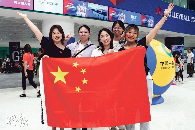 【明報專訊】來自廣州的趙小姐(右一)和Grace(左一) 是國家隊女排資深粉絲,去年亦有到紅磡香港體育館看國家隊的世排聯賽事。她們認為啟德體藝館雖然場地較漂亮和新,但覺得紅館場地座位較聚集而氣氛更佳,又認為相對北京站,香港站的周邊商品略欠新意。