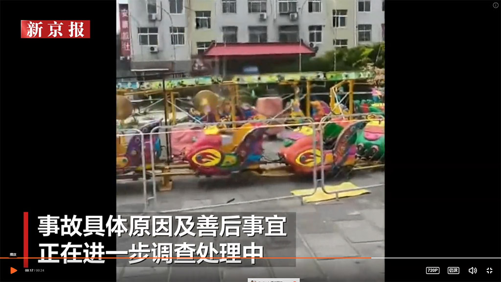 網民發布視頻顯示,在一處路攤娛樂設施處,有供兒童遊樂的小火車設施暫停運作;該網友配文稱,小火車因安全管理不善,女童被輾軋身亡。另一視頻顯示,小火車遊樂設施處已經拉起警戒線,一旁的充氣跳牀遊樂設施仍有兒童玩耍;該網友配文稱,「事故致幼兒身亡,今天仍有孩子在玩耍」。