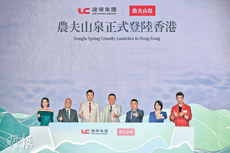 【明報專訊】樽裝飲用水龍頭農夫山泉(9633)正式進軍香港市場,並由建華集團擔任香港獨家代理。建華集團主席凌偉業昨日在發布會表示,農夫山泉旗下「農夫山泉」飲用天然水、「東方樹葉」無糖茶等多款飲料產品已在全港超過3500個銷售點上架,各大超級市場、便利店、百貨及連鎖零售渠道,加上建華旗下街市均有發售。他又強調現時僅為初步佈局,未來將力求在香港任何飲品售賣渠道都能購買到農夫山泉產品。