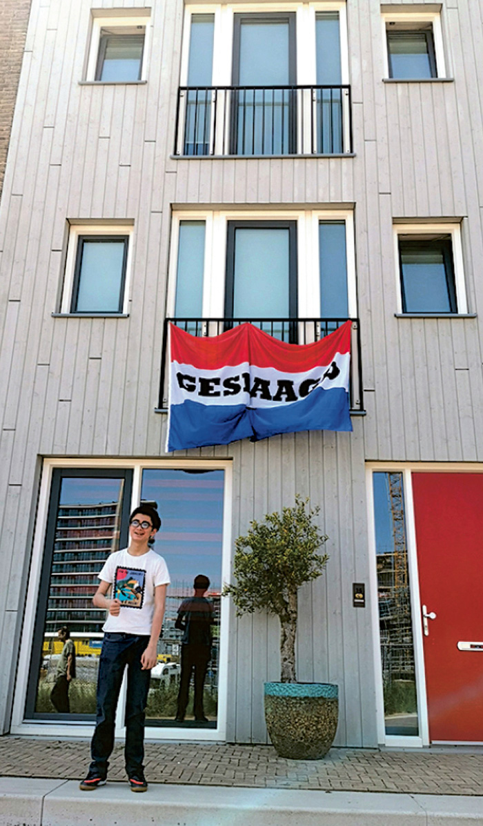 【明報專訊】每年6月是荷蘭中學生的畢業季節。荷蘭的中學畢業與世界各地有所不同,這些中學生大部分來自普通高中(HAVO 5)、研究型大學預備高中(VWO 6)等不同體系。荷蘭中學畢業有一個傳統習俗,就是要在家門前掛上寫着Geslaagd!(中譯:過關了)的荷蘭國旗和書包。這種掛書包傳統一般維持2至3星期左右,目的是公告天下——這家人的孩子中學畢業了。