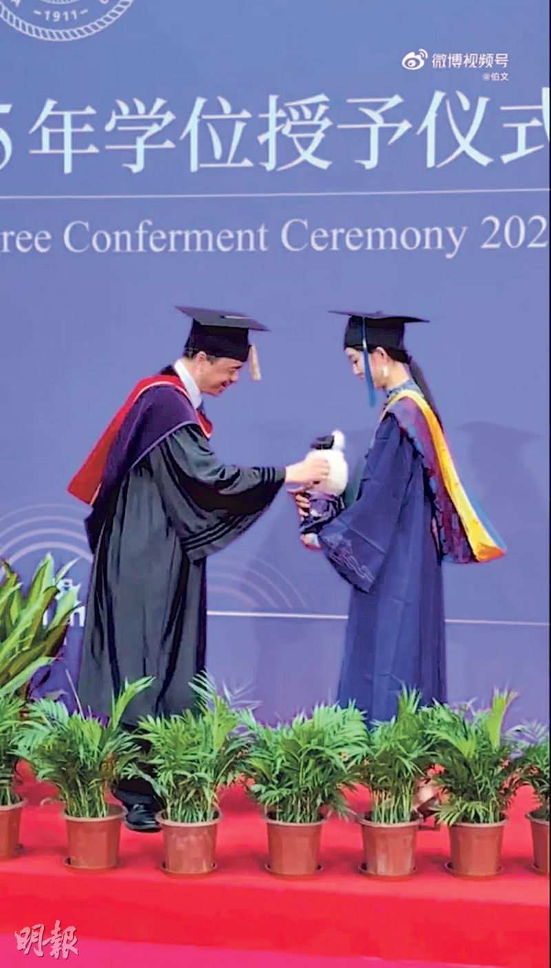在社交平台小紅書,博主「小金怪力羊」發帖稱,她上台時問副校長,能否給手中的公仔也撥穗,副校長一開始顯得猶豫,但還是應承了博主的請求,合影時問博主「這是不是最近的那個Labubu」。博主表示,之前在網上看到其他學生帶着公仔撥穗,決定有樣學樣。