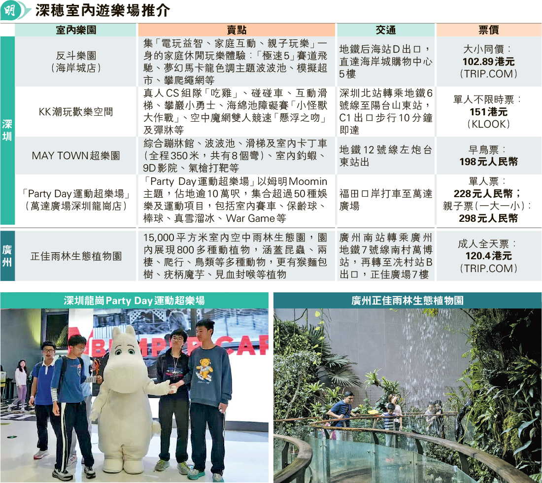 【明報專訊】暑假快將來臨,許多家庭開始計劃親子活動,而近年室內大型遊樂場成為一個極受歡迎的選擇。這些遊樂場不僅提供多樣化的遊樂設施,還能讓孩子在安全的環境中盡情玩耍,讓家長也能安心享受與孩子共度的美好時光。以下將介紹幾個深圳和廣州的特色室內大型遊樂場,包括它們的設施、特色及交通指南,幫助讀者選擇最適合的親子活動場所。