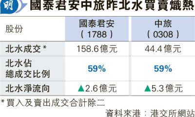 國泰君安中旅兩炒股 北水佔近六成成交 (2025-06-27)