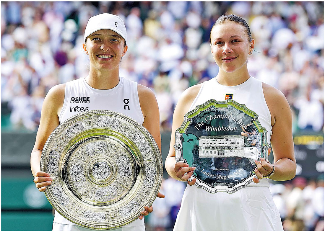 【明報專訊】施維雅達昨在溫布頓網球錦標賽女單決賽,以相隔114年首以兩盤6:0的懸殊賽果,橫掃美籍的安森莫娃,成為揚威溫網的波蘭第一人,並結束長達逾1年的冠軍荒。這名六入大滿貫決賽「例不虛發」的前「世一」賽後稱是次成就「超現實」。