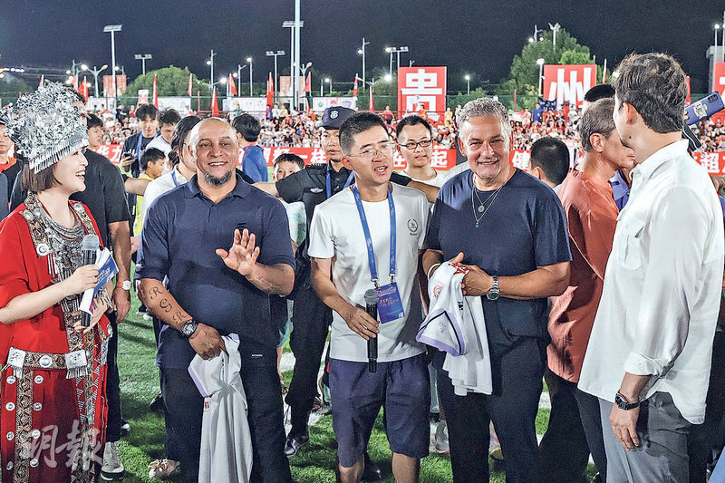 中國 黔村超災後重啟 巴治奧卡路士親臨 發佈於 3 個月 前 2025 年 7 月 28 日 By 明報 【明報專訊】上周六貴州「村超」中場休息時,退役巴西球星卡路士(左二)及意大利球星巴治奧(右二)獲邀到場與球迷互動。當日貴州省榕江縣「村超」球場迎來「2025感恩‧雄起 貴州『超』力量!」災後重建專場,在新鋪設的球場舉行3場球賽。榕江縣上月底遭遇洪水,包括「村超」球場在內的縣城部分低窪處被浸。隨着球場重建完成,當地「村超」賽事已恢復。 (中新社) 相關文章: Up Next 釋永信逐出少林 官方接管寺務 遭開除僧籍撤銷教職 春節歸國後被邊控 不要錯過 大罷免全否決 藍促賴道歉綠稱反思 新華社:「抗中」遊戲無效 民眾黨促重組內閣 繼續閱讀 贊助商 猜你喜歡