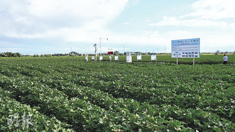 【明報專訊】7月份,新疆棉花正迎來花期。在天業集團蘑菇湖現代農業科技示範基地,1300畝的農種區過去地下水位高、鹽鹼大,企業通過修建地下暗管排鹽和地表滴灌系統,將鹽鹼地改造為畝產超500公斤的棉花田。