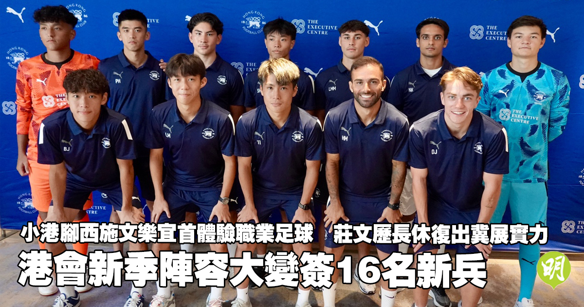 半職業球會港會上季24戰11分,在9隊之中排榜尾完成球季,今早在發布會除了宣布未來兩季都會由PUMA推出主場及作客球衣和所有足球相關服裝及裝備,新一季外援註冊由不受上限,變成每場賽事註7出6,與其他港超球隊看齊,因而陣容大變動,除了門將費查退役及羅素等主力離隊,32人名單多達16名新球員,包括曾代表港足U22出戰港會七人賽的西施文樂宜、何東霖、詹皓臻及羅焯熙,並有莊文歷、王力威及王子聰等有港超經驗球員,以及兩名新外援前鋒羅諾德與後衛安素。繼續擔任主教練的谷卓斯承認,為遵守「註7出6」政策,自然需要增加本土球員比例以平衡陣容,「目標是避免像上季墊底,爭取更高排名,同時給予年輕球員更多上陣機會,不僅是盃賽,還要在聯賽面對強隊逐步成長,令他們將來有機會外流」。