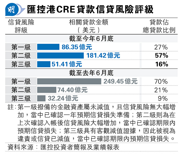 報道續提到,雖然有較大的信貸風險、但仍在準時還款屬第三級的港CRE貸款,已由45億美元增至51億美元,而匯控亦於次季減值撥備11億美元,當中4億美元減值撥備與香港CRE相關。