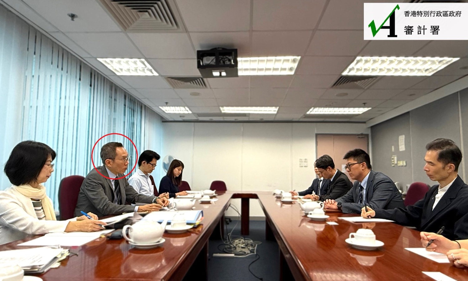政府辦公室捲「冒牌水」風波,供應商「鑫鼎鑫」負責人日前被捕,引起公眾關注物流署處理招標的程序和安排。審計署傍晚發稿指,審計署帳目審計科成員今日(19日)下午與物流署長陳嘉信等人會面,展開對政府採購樽裝飲用水招標過程的審核工作。陳嘉信旁為物流署副署長賴黃淑嫻。