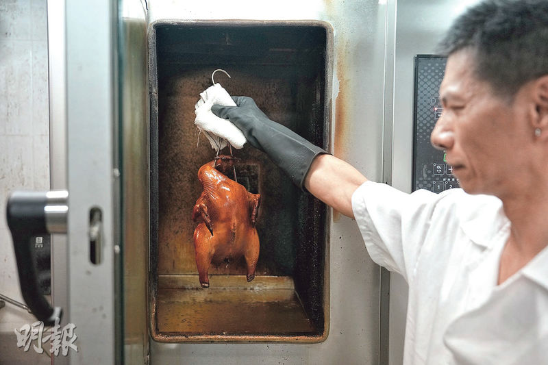 這款即烤三黃薯片雞,廚師們花了3個月構思製作。為了做到皮脆肉嫩多汁,不惜工本購置旋轉吊爐。雞先上「皮水」(用麥芽糖為主)上色,吊乾至少12小時,再放進吊爐高溫吊燒約30分鐘,逼出多餘水分和油分。一出爐要立刻趁熱斬件,大廚吳鶴鳴說:「這時候的雞皮是最薄脆的,不趁熱斬件,雞皮會變軟,不會像薯片般咁脆。」雞皮薄脆,雞肉嫩滑,連雞胸肉也濕潤不柴,值得一試。由於每日供應約20份,宜提早預訂。