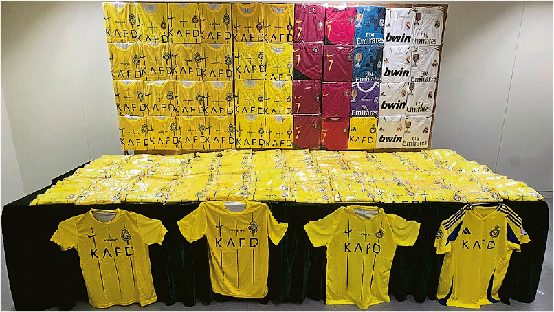 【明報專訊】針對近月本港接連舉辦足球盛事,海關加強打擊冒牌球衣,共拘捕6名流動小販涉嫌觸犯《商品說明條例》。行動中檢獲約1200件懷疑冒牌物品,包括900多件冒牌球衣。