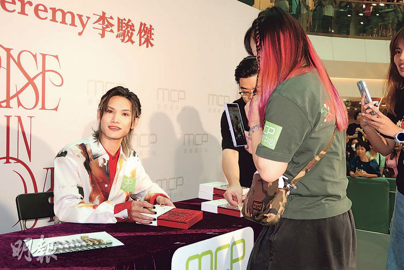 【明報專訊】MIRROR成員李駿傑(Jeremy)昨日為個人專輯《RISE IN LOVE》於商場舉行簽唱會,逾500名粉絲到場支持。李駿傑除獻唱新歌,又跟粉絲玩遊戲。簽唱會之前因打風延期至昨日補辦,他稱知道這星期又掛風球曾擔心,自言去旅行常遇黑雨或打風情况,笑說可能是貴人招風雨。