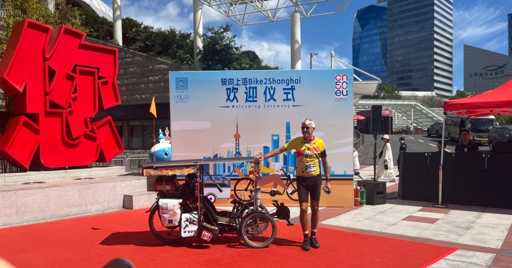 63歲比利時騎手克勞德・布魯爾(Claude Brouir)騎太陽能助力單車從比利時布魯塞爾出發,橫跨歐亞大陸1.2萬公里,歷時4個多月,在8月30日上午10時抵達上海東方明珠塔。