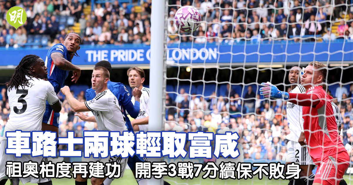繼上輪聯賽大破韋斯咸後,車路士今晚(30日)在英超早場賽事續有好表現。憑態勇的新援前鋒祖奧柏度及中場主力安素費南迪斯上、下半場各建一功,在主場以2:0輕取同城對手富咸,開季2勝1和續保不敗身。