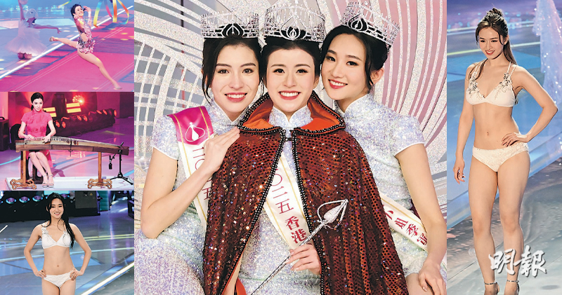 【明報專訊】《2025香港小姐競選決賽》昨晚於將軍澳電視城舉行,大熱⑨陳詠詩艷壓群芳登上冠軍寶座,⑦施宇琪屈居亞軍,季軍是⑬袁文靜,①李尹嫣兼得最上鏡小姐及友誼小姐,無緣三甲。③蔡華英打入最後5強,但最終未能獲獎。