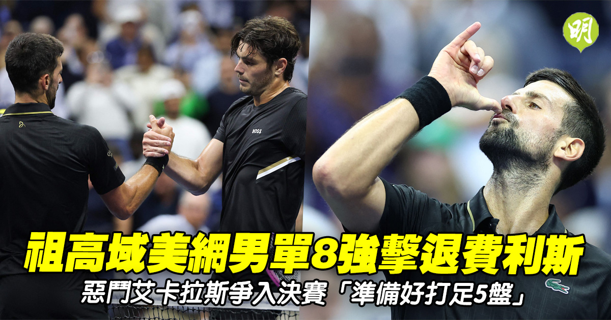 網球|祖高域美網男單8強擊退費利斯 惡鬥艾卡拉斯爭入決賽「準備好打足5盤」 (16:05)