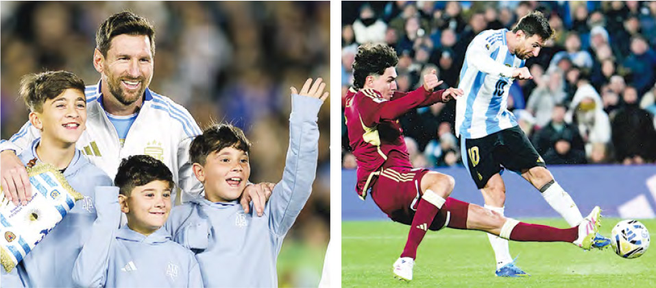 【明報專訊】盛傳將是來年美加墨世界盃前主場「最後一舞」的阿根廷球王美斯,昨在世界盃南美洲區外圍賽以梅開二度完美謝幕,領銜在主場3:0大勝委內瑞拉隊。美斯賽後暗示已戰畢主場最終戰外,未確認是否會收回之前「(2022年是)最後世界盃」的宣言,只稱會以自己感覺作最後決定。