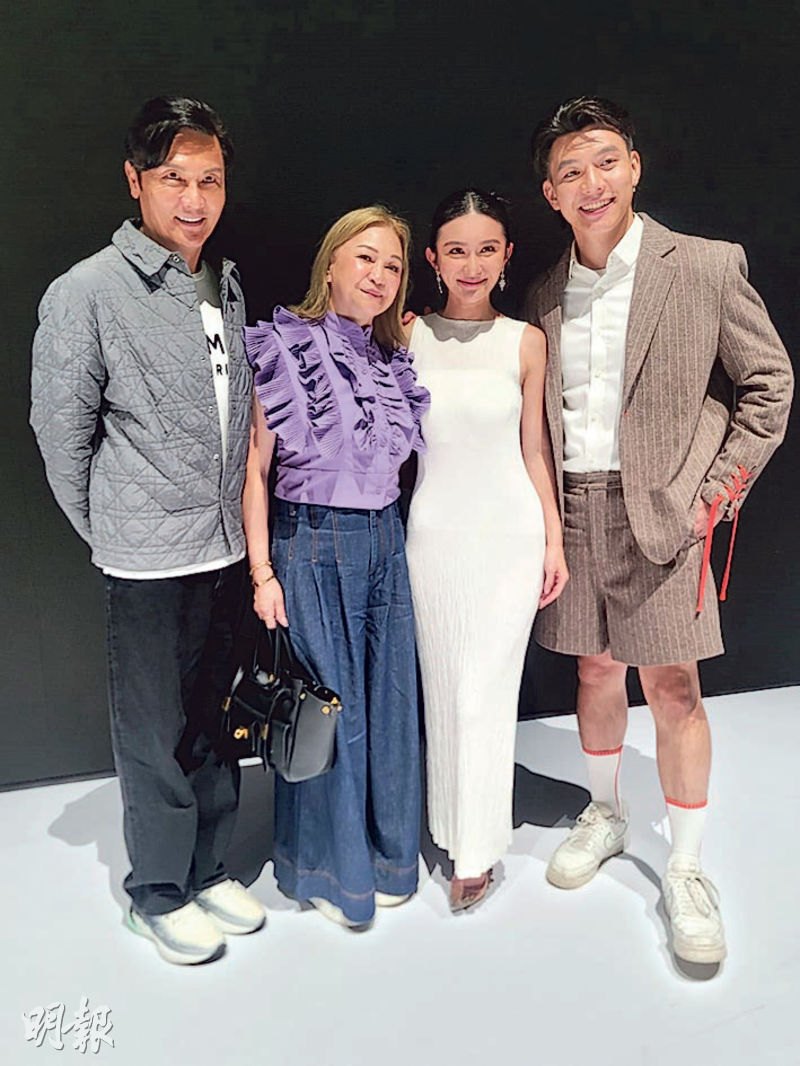 【明報專訊】關禮傑前晚與太太梁安娜及「未來女婿」徐灝晴(Hugo)到會展為擔任時裝匯演司儀的女兒關楓馨撐場。關禮傑表示看過女兒主持電視節目很多次,今次來看現場表現,笑稱女兒不緊張,反而自己緊張。可有過兩招給女兒?他說:「是她過兩招畀我,她的組織能力及口才比我流利很多,我只是演戲出身,主持唔得,沒有她那麼精靈,不過她平時也有找我討論角色。」