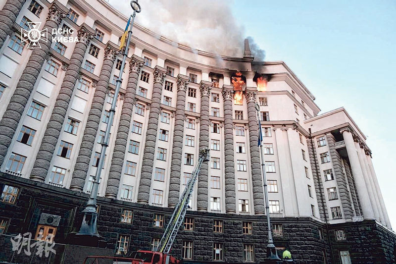 【明報專訊】俄羅斯周日(7日)動用逾800架無人機及十多枚導彈大舉空襲烏克蘭首都基輔,不僅造成4人死亡,更首次擊中烏克蘭政府辦公大樓。烏克蘭總統澤連斯基警告,俄方此舉只會令戰事愈拖愈長。