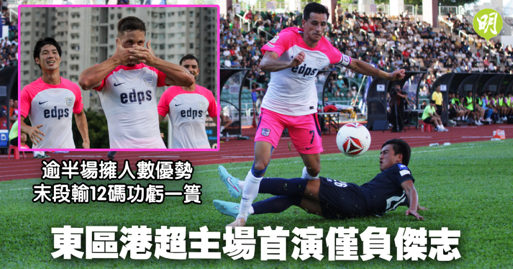 港超「升班馬」東區今午(14日)首度在小西灣運動場主場出擊,雖大部分時間獲多踢一人優勢,但末段被罰12碼,終以0:1不敵由射手利安度操刀得手的傑志。東區賽後戰績1和1負,傑志則有驚無險拿下兩連勝。
