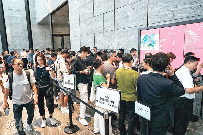 【明報專訊】新一份《施政報告》出台,以及美國減息0.25厘後,首輪開售全新盤、新世界(0017)旗下約兩年樓花期的九龍城衙前塱道瑧博,昨日在風球下「曬冷式」盡推全盤120伙(包括5伙招標出售),其中採價單形式、以折實均呎1.82萬元發售的115伙即日全數沽清,全盤只餘5伙招標單位待售。代理指出,逾半買家為投資者,其中有大手客斥約3600萬元連掃3伙3房戶。受瑧博熱銷帶動,本月至今整體一手成交增至約1250宗,是今年2月以來、新盤市場連續8個月每月錄逾千宗成交,為2019年3月至11月連續9個月每月錄逾千宗後的最長旺市。