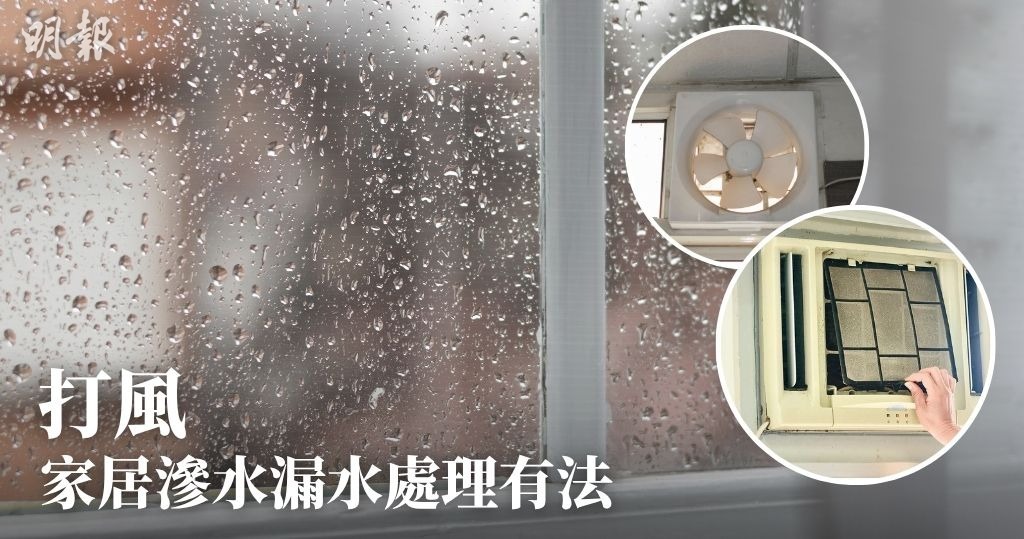 風暴襲港帶來狂風暴雨,家居窗邊、窗口式冷氣機位或會出現滲水漏水,可如何應對?本文整理處理窗邊、冷氣機位、抽氣扇漏水資訊。