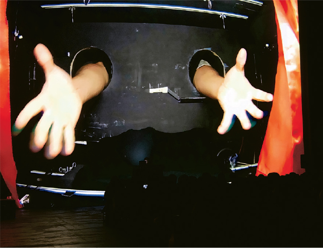 這次演出的舞台設定與傳統大相逕庭:觀眾席位於中間,樂團於左右和後方三邊環繞,《黑盒音樂》的黑盒與投影則設置在前方。這種佈局讓樂團的演奏聲包圍觀眾,為後續的觀眾感官體驗部署。