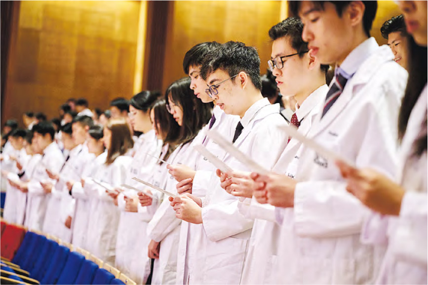 由此可知,醫生一襲白袍,既承載着西方醫學的發展史,也寄託了醫學對人類健康的使命與關懷。而參加白袍禮這項儀式,象徵着新生跨進了醫學殿堂,從此肩負守護民康的使命。