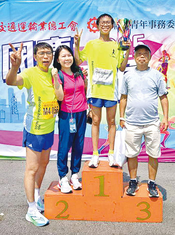 【明報專訊】工聯會青年事務委員會與汽車交通運輸業總工會噚日合辦「國慶長跑2025」,有500多名跑手參加,工聯會立法會議員陸頌雄同囝囝都分別參賽,陸頌雄以1小時02分完成10公里賽事,囝囝就以14分09秒完成4公里賽事,勇奪少年組第一名。