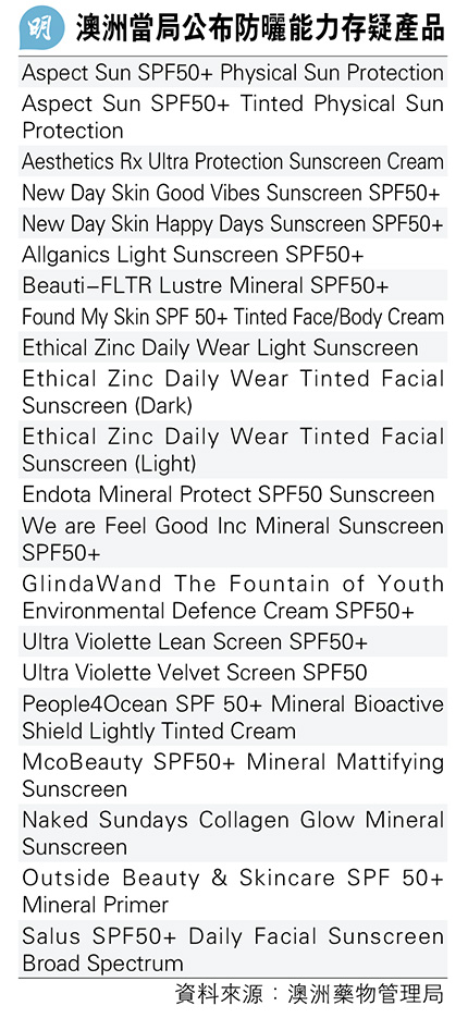 澳防曬霜誇大效能愈揭愈多 使用相同基礎配方 18款下架