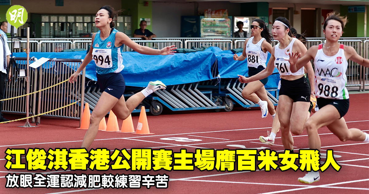 2025香港田徑公開賽今早(1日)於灣仔運動場上演首日賽事,港將江俊淇榮譽女子百米飛人,男將陳一樂則僅負新加坡跑將在100米摘銀。江俊淇坦言是役主為調整節奏,將戰粵港澳全運會個人賽及接力賽的她,透露當下難題是減肥,「練習不是最辛苦,減肥辛苦得多」。