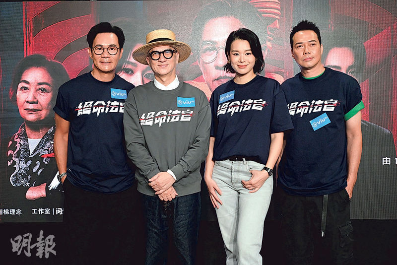【明報專訊】張家輝、胡杏兒、張兆輝、謝天華、林嘉華、韋羅莎、張國強及駱振偉等昨日為即將於ViuTV播出的新劇《絕命法官》宣傳。張家輝表示該劇遇到很多新知舊友,感覺良好且有親切感,故經常在片場「萬歲」請飲請食,藉此提高劇組士氣。談到劇中不少演員出身無綫,今次似倒戈,跟宣萱主演的無綫劇《巨塔之后》搶收視?張家輝說:「現在工作沒有分太多,都是工作啫,我們下次可叫埋宣萱拍《絕命法官》續集。」胡杏兒在旁和應,稱演員間無分你我,大家都為視壇貢獻,也期待將來再跟宣萱合作。張家輝昨日戴帽現身,透露最近為新戲剃光頭,笑言順便為《絕命法官》角色贖罪,「為了演好戲,我去到呢個年紀都不怕剃頭,今次是我提議剃頭」。