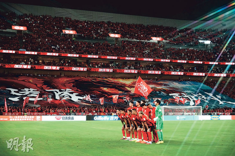 香港足總昨再接再厲,賽前奏畢國歌後,闊60米的全新Tifo從港足打氣區緩緩落下,以一條紅龍與一隻老虎搏鬥,寓意隊徽印有龍的港足大戰國寶為孟加拉虎的客軍。