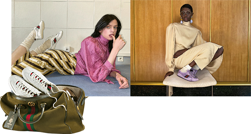 【明報專訊】高級時裝品牌推出運動鞋已不是新鮮事,從街頭到伸展台,運動鞋不再是功能鞋履,更成為展現個人風格的重要fashion item。Gucci新推出的運動鞋系列Gucci Shift,於2026 Cruise時裝騷首度亮相,設計精緻輕盈,貼地感十足,並以品牌經典Web條紋為基調,加入馬術細節,結合傳統與現代風格,迎合時下的日常穿搭。女裝款式(右圖,$8000)靈感源自芭蕾舞鞋,採用GG標誌網布與柔軟麂皮,配搭橡筋鞋側與扁平鞋底,展現優雅與舒適兼備的風格。男裝版本(左下圖,$8400)則強調現代感,鞋舌與後踭綴有Web條紋,鞋底飾以特大品牌標誌,備有淨色皮革、洗水皮革和GG帆布選擇。●