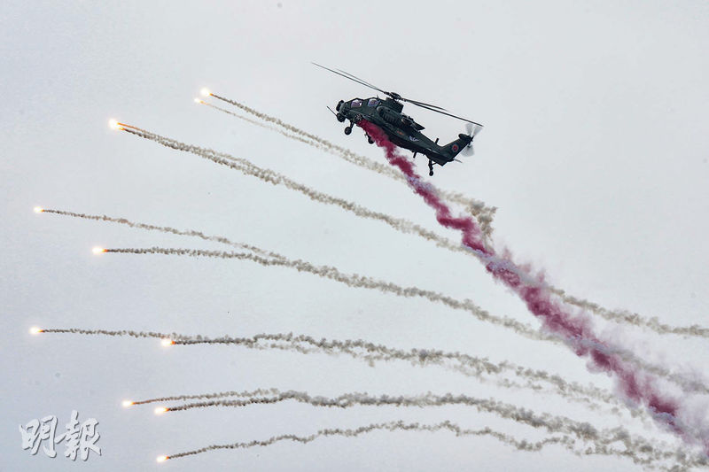 【明報專訊】中國天津國際直升機博覽會昨起在天津舉行4天,上月亮相北京九三閱兵的解放軍直20T突擊型直升機,昨在現場展示懸停回轉、萊維斯曼機動、鳳凰展翅等單機課目。這是直20T首度在公開場合飛行表演,顯示優異性能及機師精湛能力。