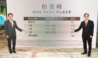 港島方面,長實(1113)及港鐵(0066)合作的黃竹坑站港島南岸Blue Coast II,連錄3宗3房戶成交,買家均為本地客、共涉近5390萬元,其中5座23樓、36樓D室,實用面積均為770方呎,成交價分別為1709.2萬及1829.3萬元,實呎2.21萬及2.37萬元;另3座27樓G室,實用面積759方呎,成交價1851.2萬元,實呎2.43萬元。嘉里(0683)及港鐵等合作、位處黃竹坑站同區的港島南岸海盈山,亦以1297.57萬元,售出2A座8樓A室,實用面積517方呎兩房戶,實呎2.5萬元。