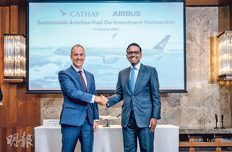 【明報專訊】國泰集團(0293)宣布,與空中巴士(Airbus)將聯合投資最多7000萬美元(約5.46億港元)發展可持續航空燃油(SAF)項目。國泰營運及航空服務總裁麥皓雲表示,雙方將共同物色、評估及投資具商業可行性、技術成熟度及長遠供應潛力的SAF項目。