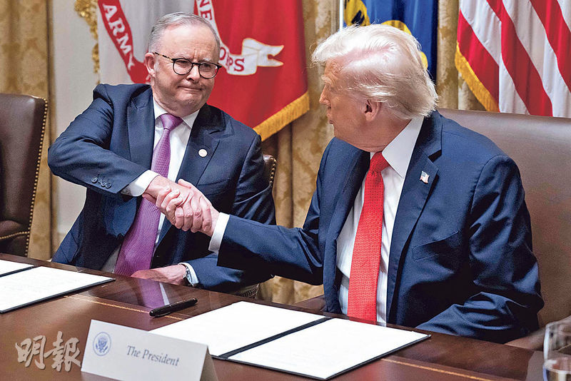 特朗普則聲言「大約一年後,我們將擁有多到不知如何處理的關鍵礦產和稀土」,之後在記者會上戲言「到時這些礦物只值約2美元」。白宮聲明表示,美國對澳洲的投資將釋放價值530億美元(約4134億港元)的關鍵礦產儲備,但細節未明。