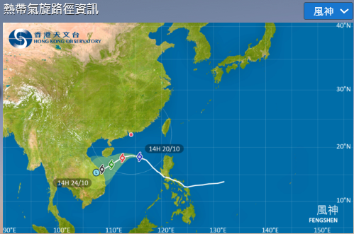 天文台在今日(20日)下午5時20分發出三號強風信號,將至少維持至明日(21日)下午6時。預料本港平均風速每小時41至62公里。下午5時,強烈熱帶風暴風神集結在香港之東南偏南約430公里,即在北緯18.5度,東經115.0度附近,預料向西或西北偏西移動,時速約18公里,橫過南海北部。