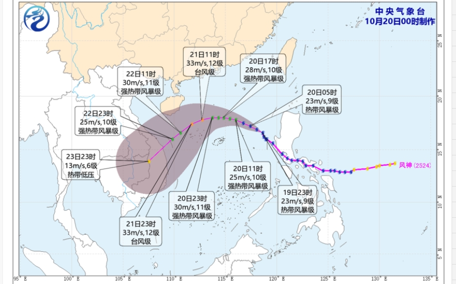 即時兩岸 風神 | 今天將升級為強烈熱帶風暴 華南三天暴雨 (00:50) 發佈於 4 天 前 2025 年 10 月 20 日 By 明報 中央氣象台報告,熱帶風暴「風神」10月20日零時距離海南省三沙市(西沙永興島)偏東方向約620公里,最大風力 9級(約83公里時速),將以每小時25至30公里的速度向西偏北方向移動,強度逐漸增強。 預料「風神」在20日上午增強為強烈熱帶風暴,21日增強為颱風級,趨向越南中部。 未來三天,受「風神」及外圍環流影響,台灣、福建、廣東、海南島將有強風雨天氣。(中央氣象台) 相關文章:天氣速遞風神颱風 Up Next 王文濤與荷蘭經濟大臣通話 促妥善解決安世半導體問題 (23:23) 不要錯過 全國秋糧收穫近七成 (22:45) 繼續閱讀 贊助商 猜你喜歡 天文台上午8時40分錄18.4°C 今年入秋以來最低 (09:03) 天氣|天文台:周三有幾陣雨 市區最低19°C (20:57) 天文台取消所有熱帶氣旋警告信號 (18:20) 風神 | 緩慢趨向西南 海口3港停運 (00:34) 天文台發出三號強風信號 料至少維持至周二傍晚6時 (17:21) 天氣|天文台:周二雨勢有時頻密 晚上市區氣溫最低19°C (21:04)