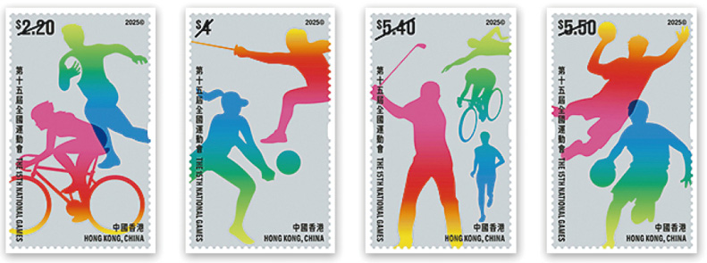 4款郵票以香港將承辦嘅8個競賽項目設計,分別係22歲以下男子籃球、場地單車、劍擊、高爾夫球、男子手球、七人欖球、三項鐵人及沙灘排球。